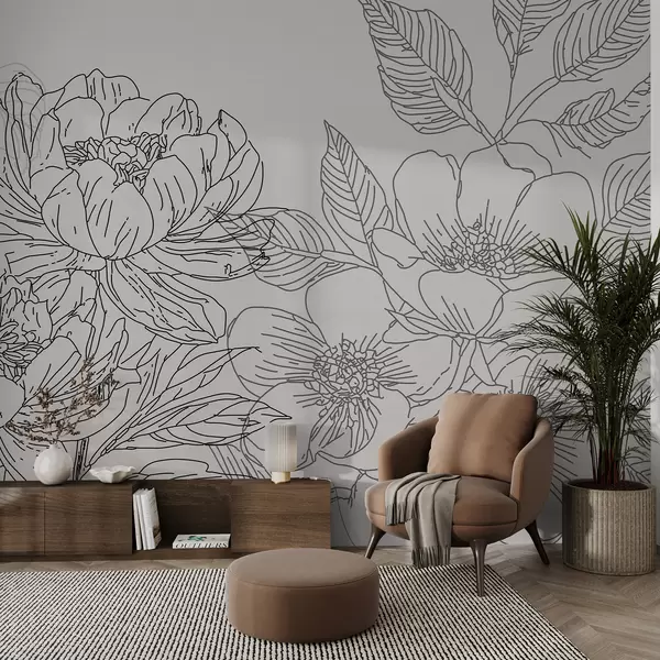 Fotomurales Flores lineales de color negro Nr. w01530v1