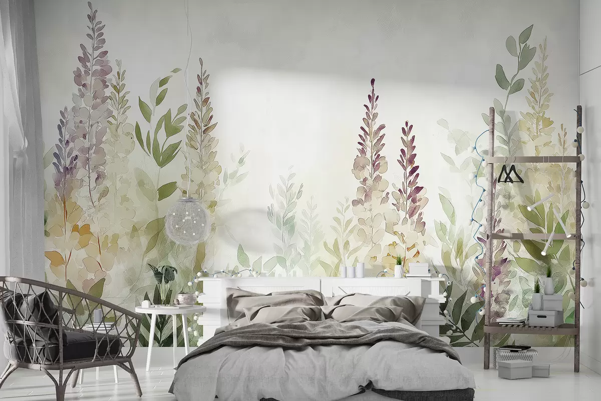 Fotomurales Acuarela jardín de flores, diseño floral, colores naturales Nr. w01562