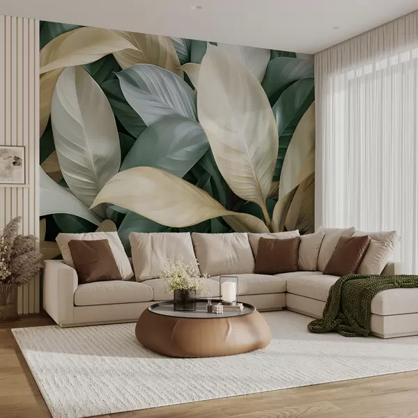 Fotomurales Grandes hojas tropicales en colores verde y beige Nr. w01587v1