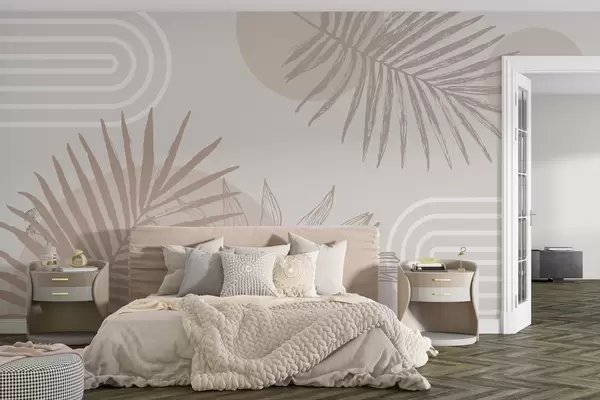 Fotomurales Papel pintado geométrico con hojas de palmera en estilo boho Nr. w01601