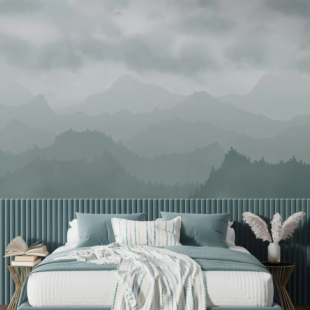 Fotomurales Montañas neblinosas con cirros azules en el cielo Nr. w01637v2