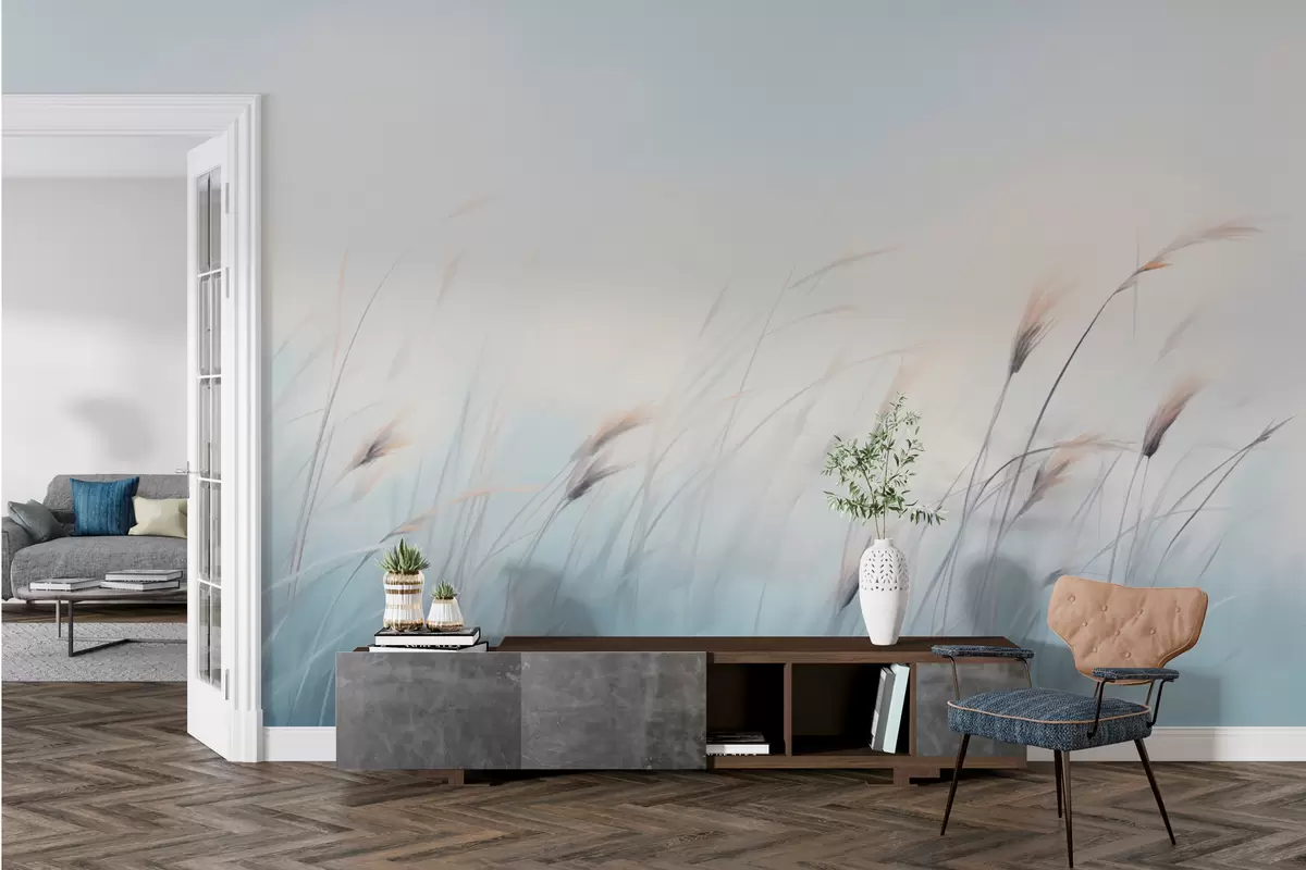 Fotomurales Delicadas hierbas de campo sobre fondo azul Nr. w01643