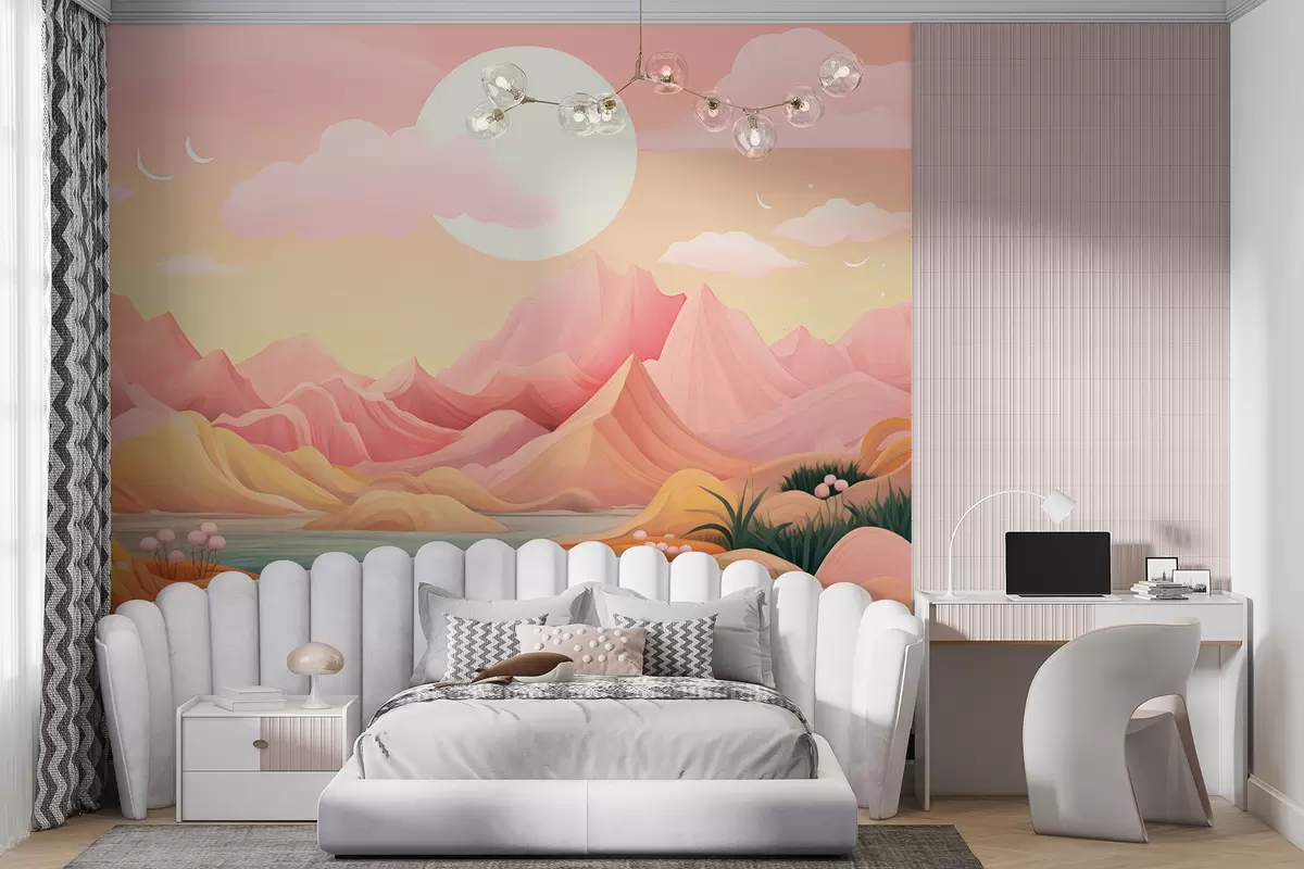 Fotomurales Fantástico paisaje de colores pastel con suaves montañas rosas y melocotón Nr. w01656