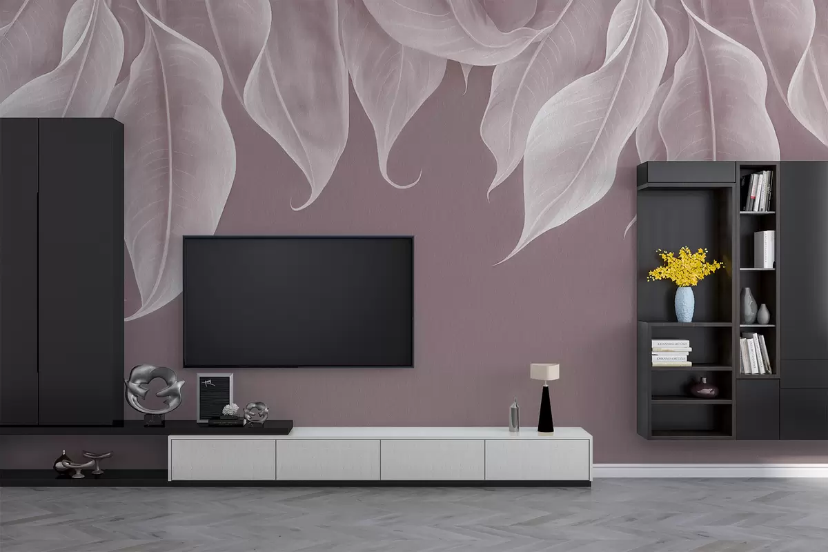 Fotomurales hojas grandes colgantes de color rosa Nr. w01680v2
