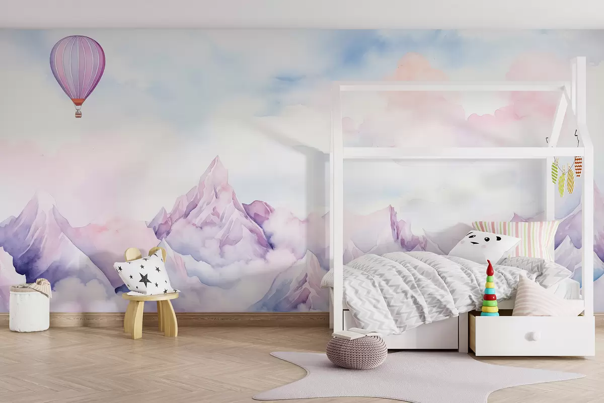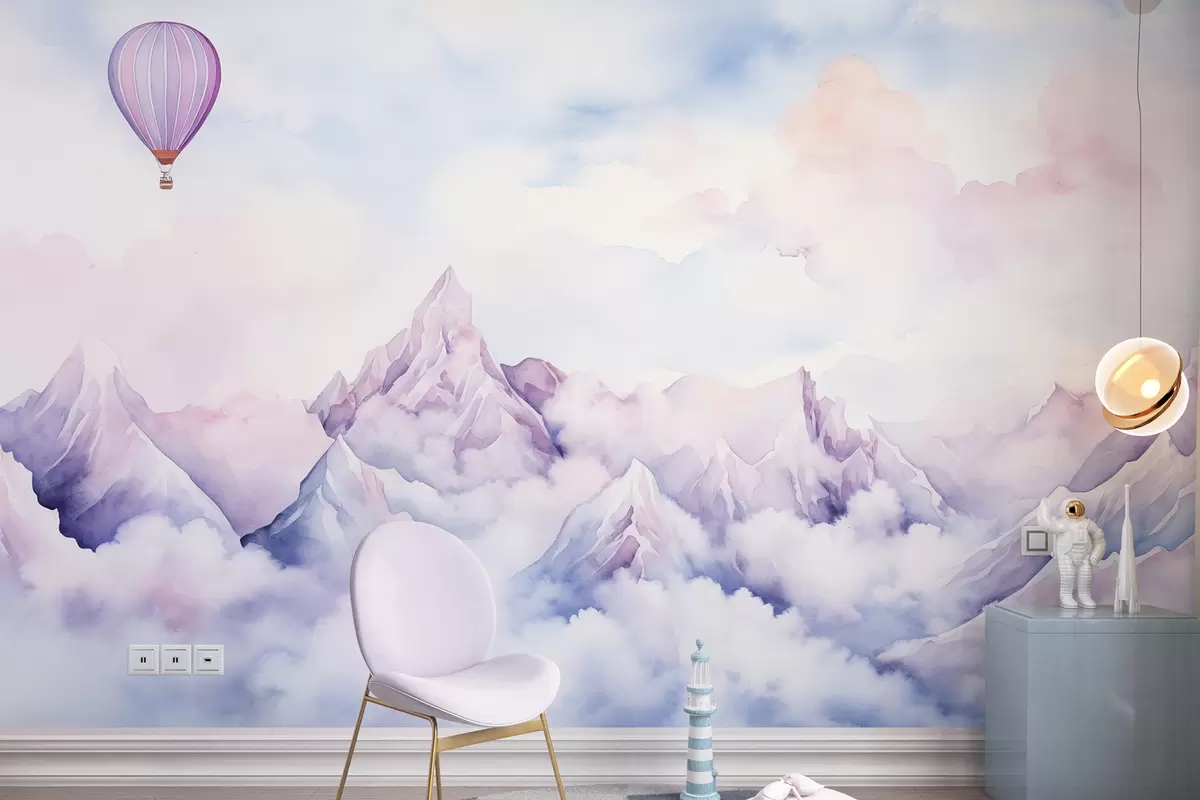 Fotomurales Globo de aire en las montañas, acuarela, suaves colores etéreos Nr. w01789