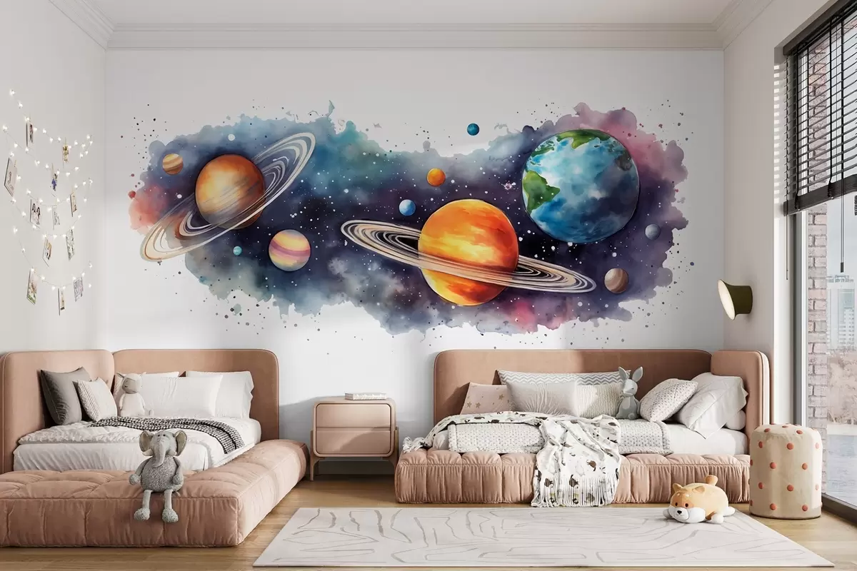 Fotomurales Acuarela planetas, espacio, cósmico, Tierra, Saturno Nr. w01802
