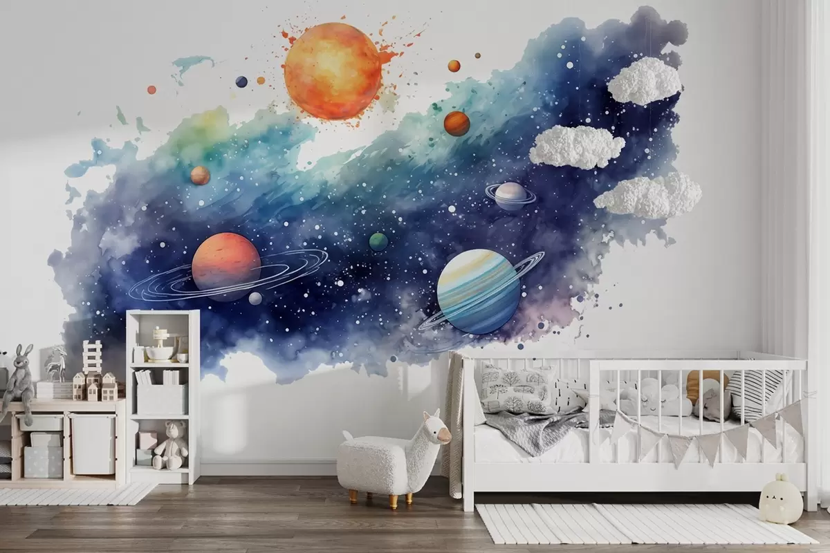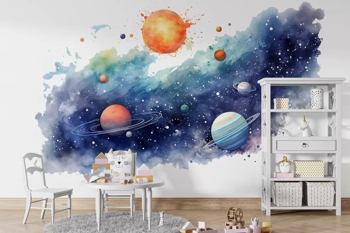 Fotomurales Acuarela espacio, planetas, sol, estrellas Nr. w01803