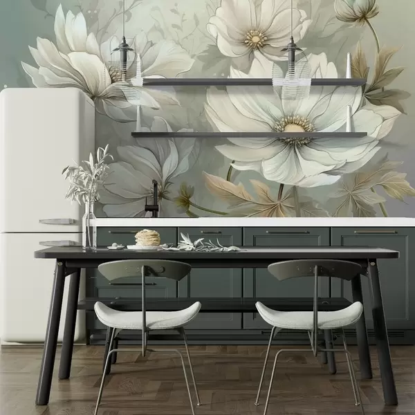 Fotomurales Grandes flores blancas y beige, fondo delicado Nr. w01808