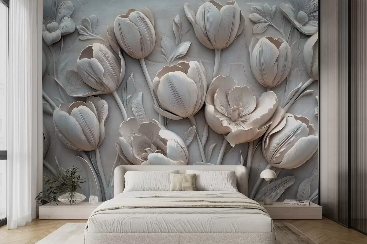 Fotomurales arte floral en 3D con elegantes tulipanes en color gris Nr. w01851v1