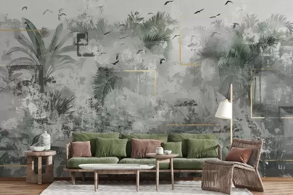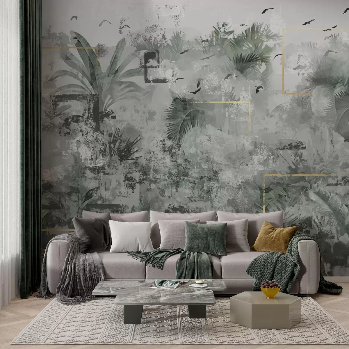 Fotomurales Silueta de selva tropical de estilo grunge Nr. w01917