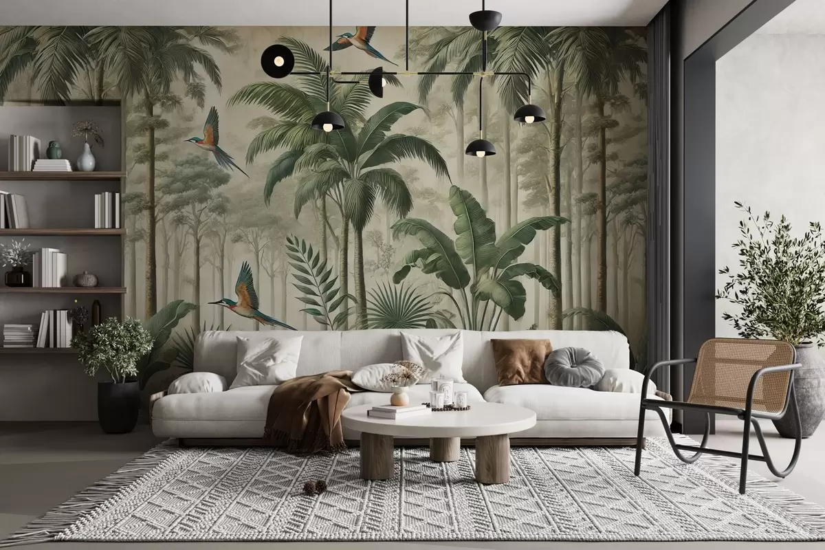 Fotomurales Panorama con paisaje tropical y aves Nr. w01957