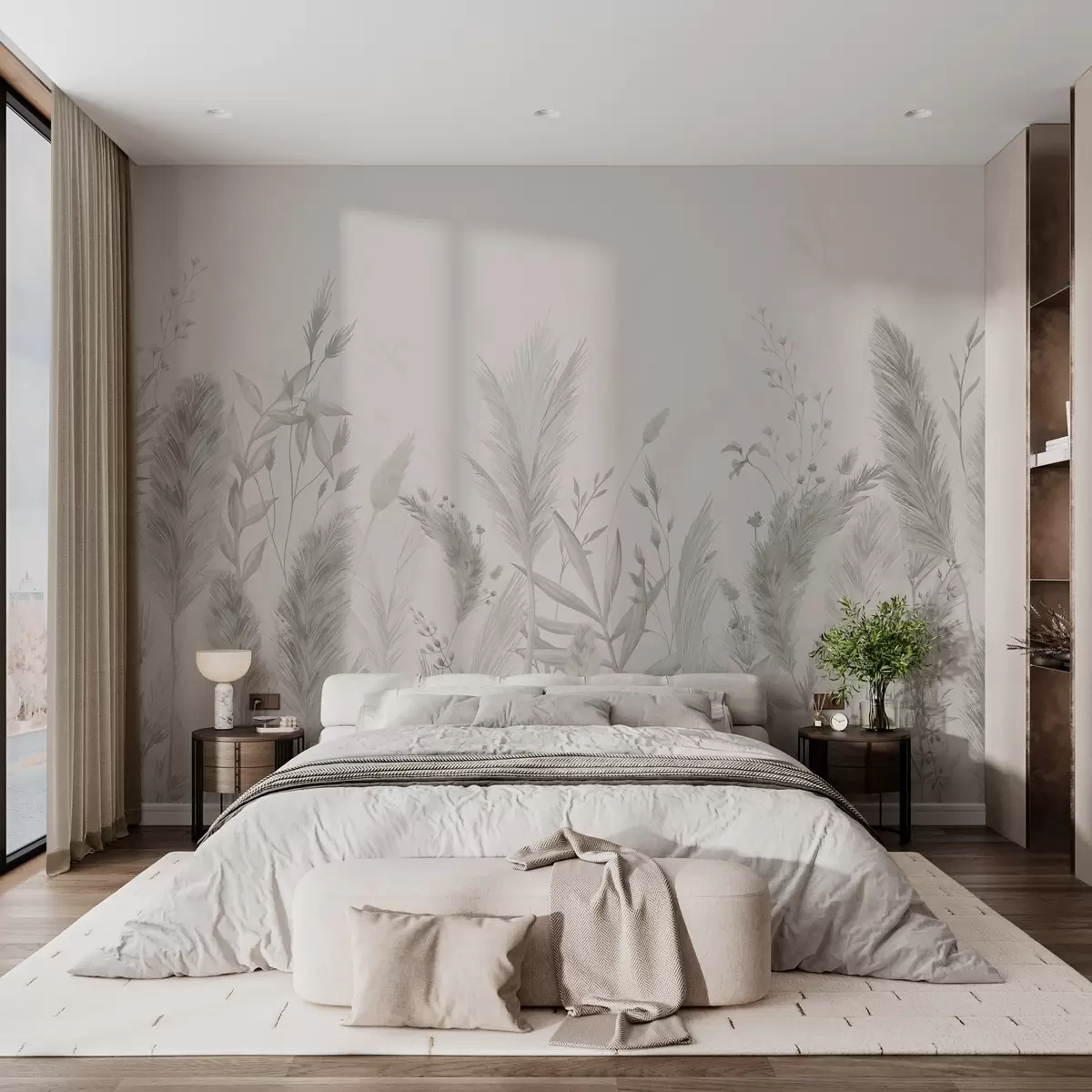 Fotomurales Hierbas altas y flores de colores neutros Nr. w02004