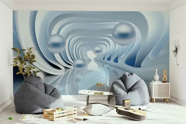 Fotomurales Papel pintado futurista con una panorámica del túnel en perspectiva y perlas voladoras Nr. w02134