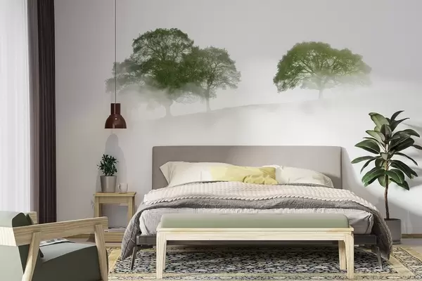 Fotomurales Árboles en la colina, minimalismo, naturaleza, paleta de colores verdes Nr. w02148v2