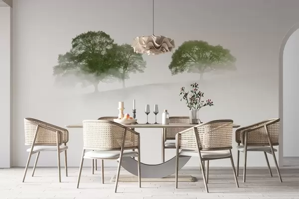 Fotomurales Árboles en la colina, minimalismo, naturaleza, paleta de colores verdes Nr. w02148v2