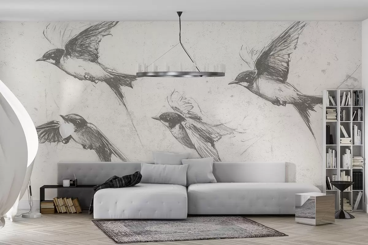 Fotomurales Pájaros voladores, dibujo a tinta, minimalismo, colores grises Nr. w02155