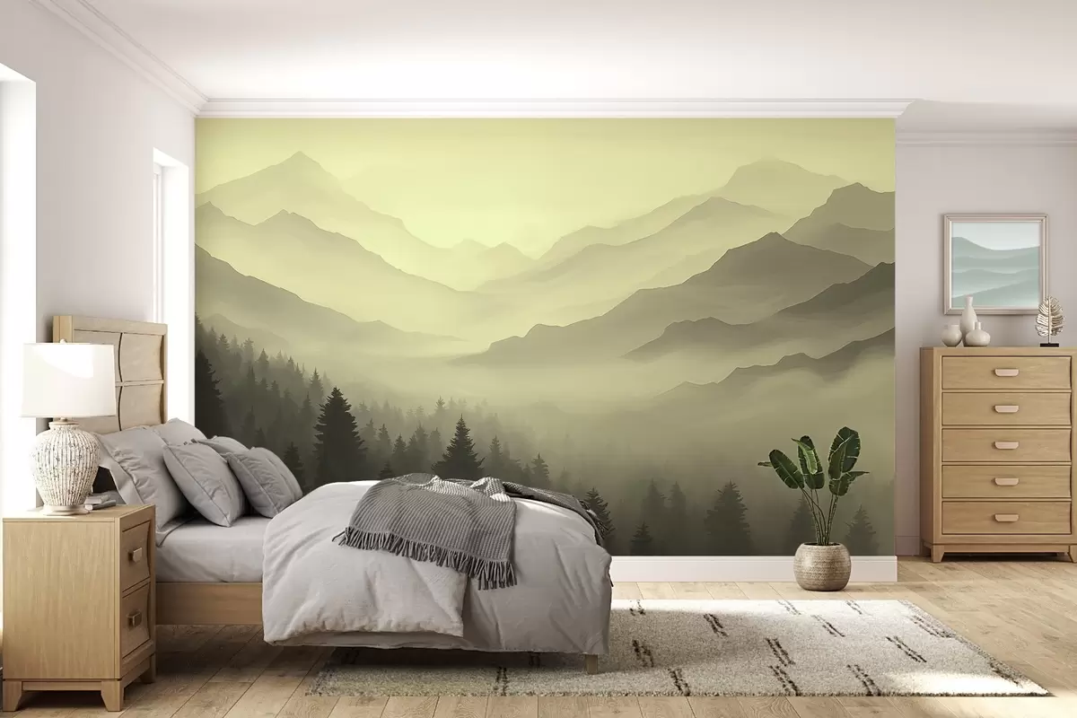 Fotomurales Bosques y montañas en tonos verdes Nr. w02186v1