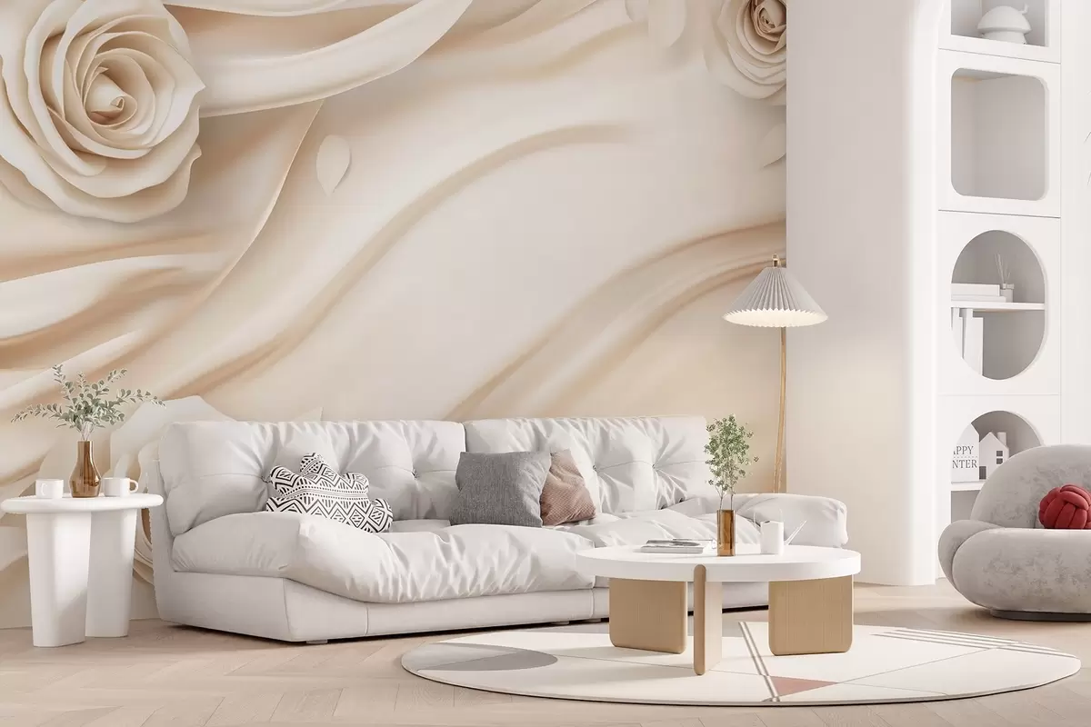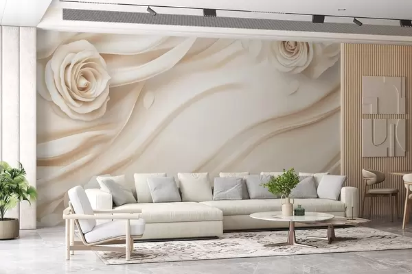 Fotomurales Elegante fondo beige con rosas Nr. w02197