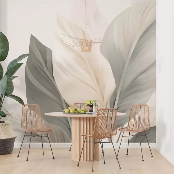 Fotomurales Hojas beige y grises sobre fondo claro Nr. w02217