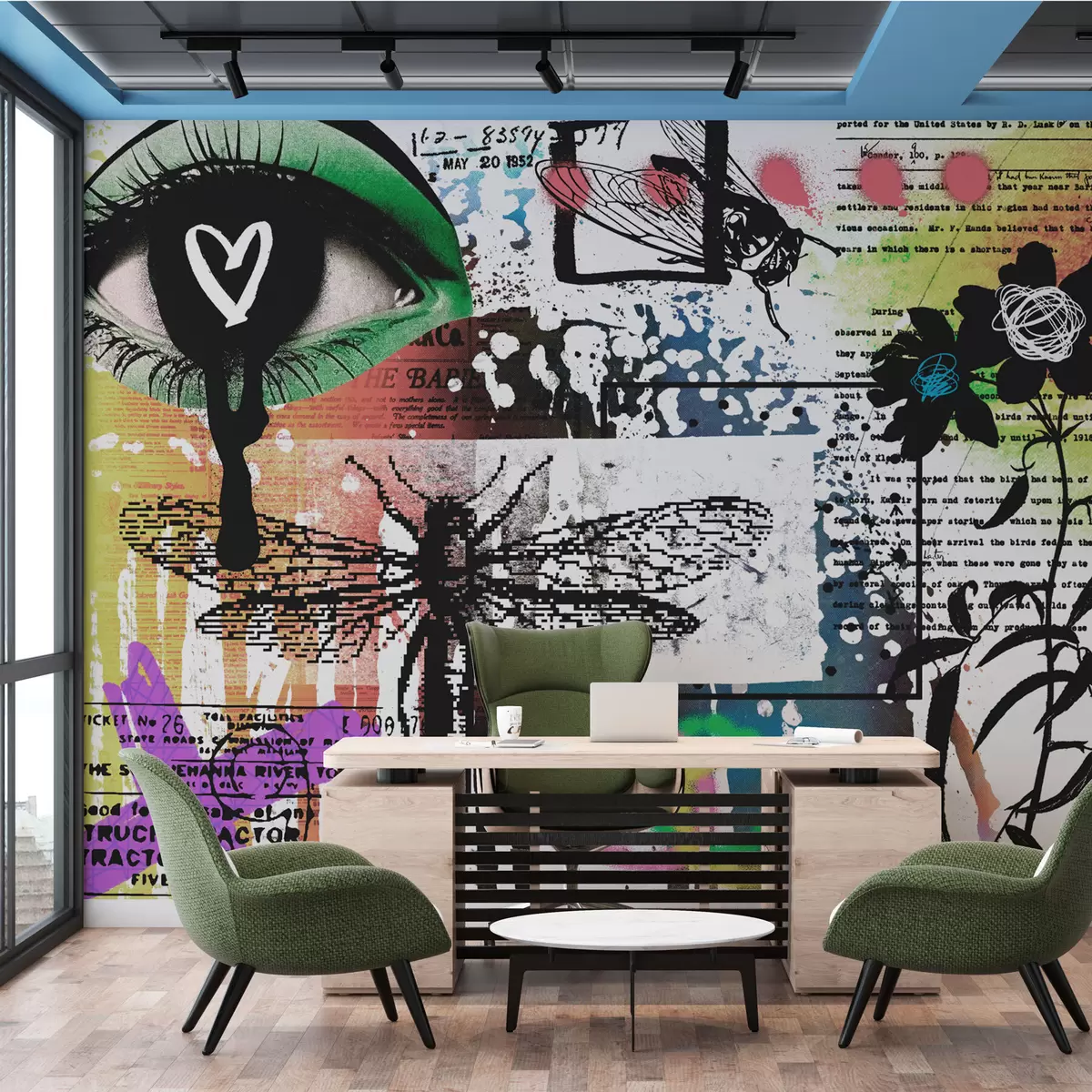 Fotomurales Inscripciones estilo graffiti, flores, figuras Nr. w02255