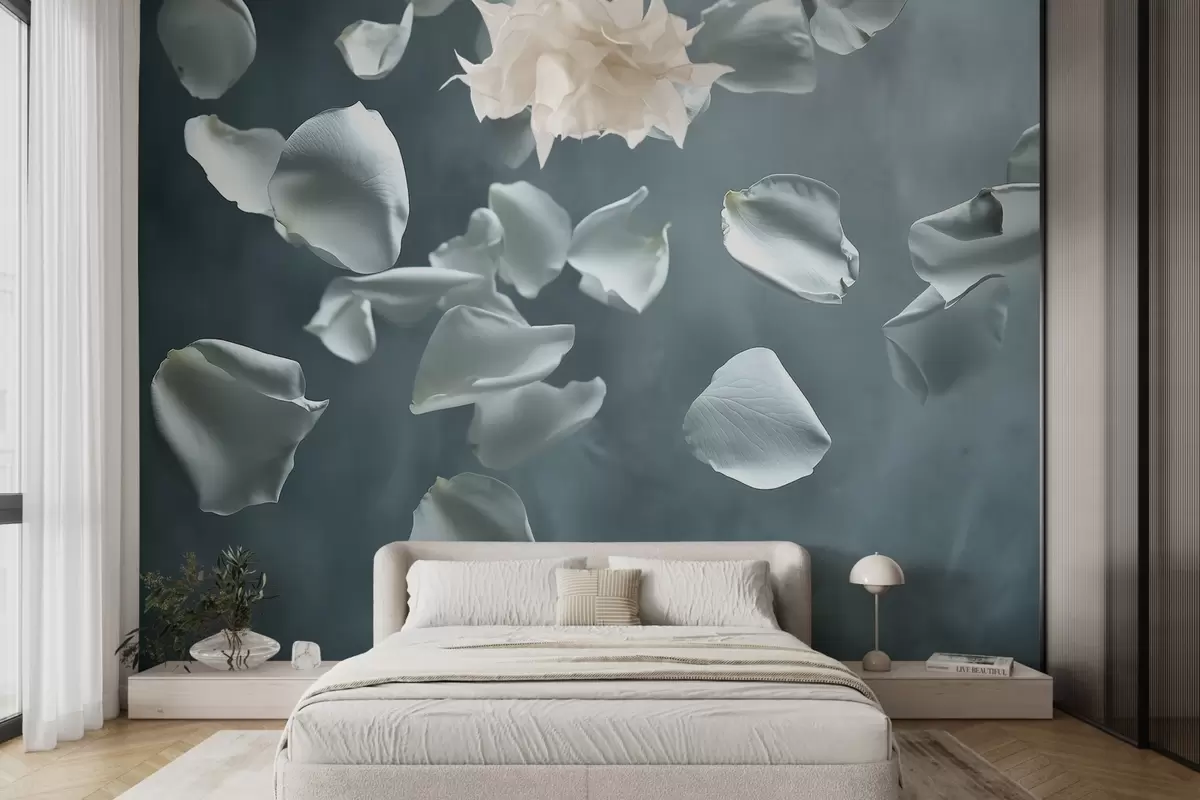 Fotomurales Delicados pétalos de rosa cayendo sobre un fondo oscuro Nr. w02289