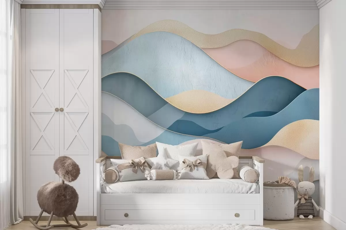 Fotomurales Motivo Art Déco ondulado en colores rosa y azul Nr. w02290