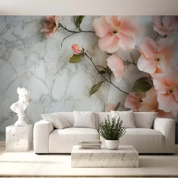 Fotomurales Delicadas flores sobre fondo de imitación de mármol Nr. w02291