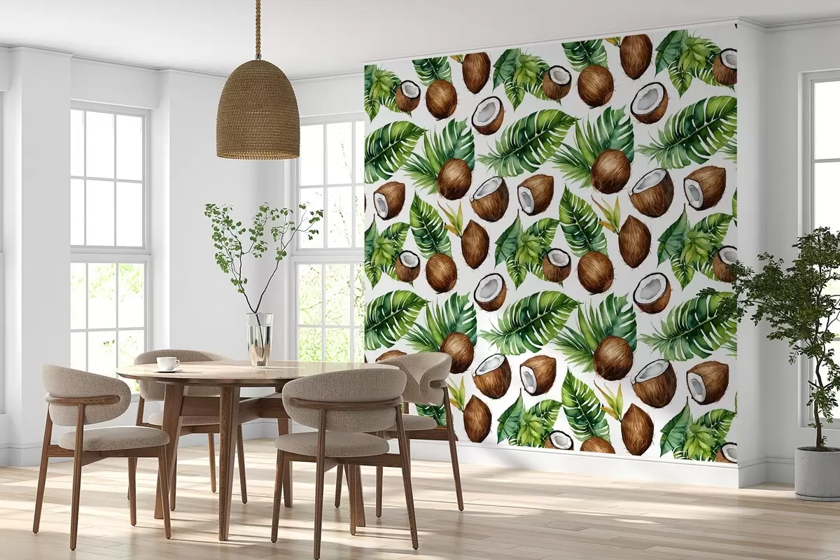 Fotomurales estampado tropical con cocos y hojas Nr. w02293