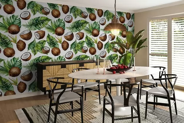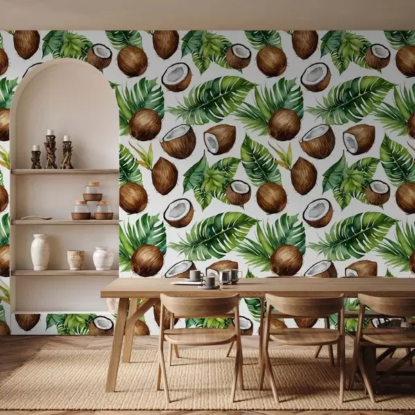 Fotomurales estampado tropical con cocos y hojas Nr. w02293