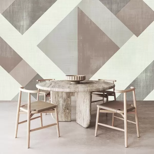 Fotomurales Moderno diseño geométrico de papel pintado con formas superpuestas en suaves tonos beige, verde y gris Nr. w02341v1
