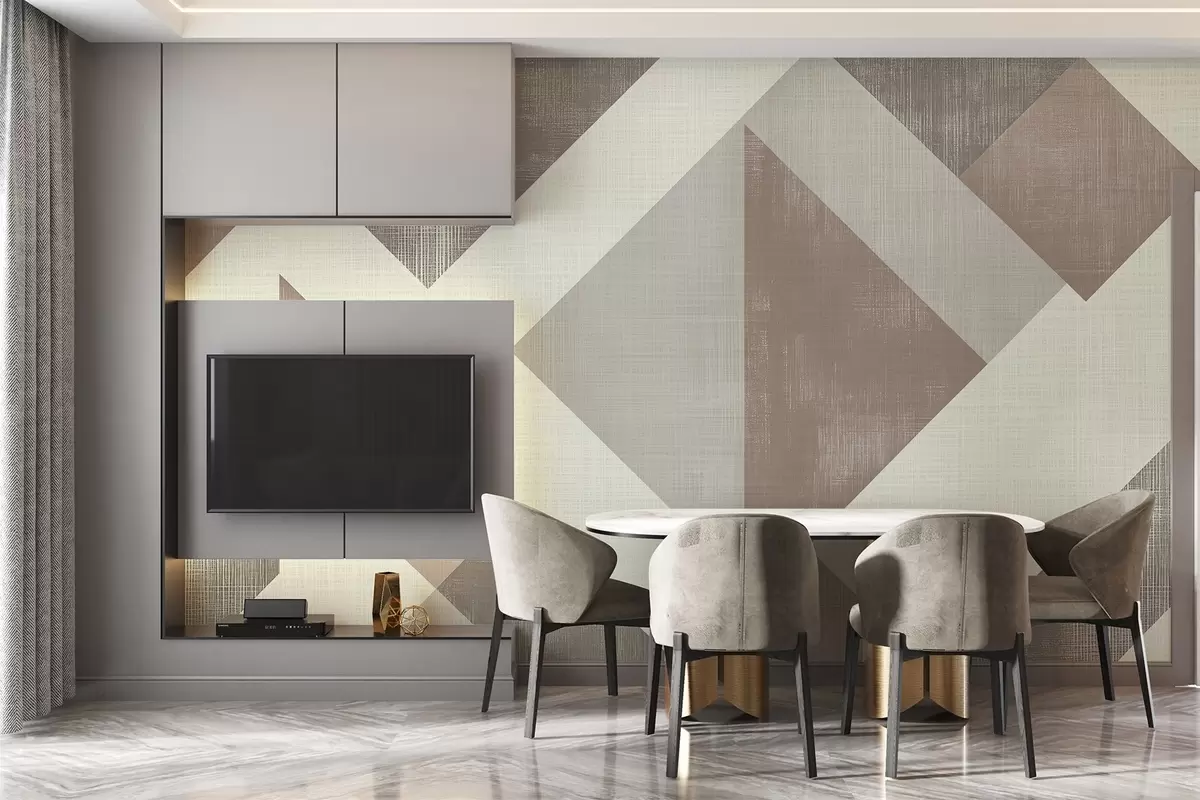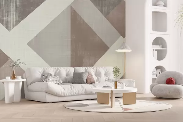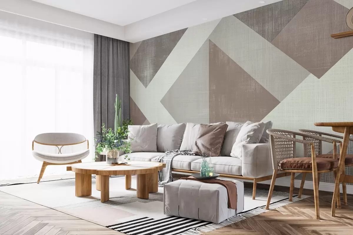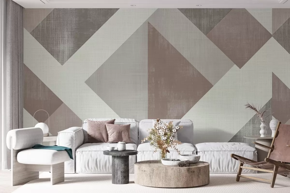 Fotomurales Moderno diseño geométrico de papel pintado con formas superpuestas en suaves tonos beige, verde y gris Nr. w02341v1