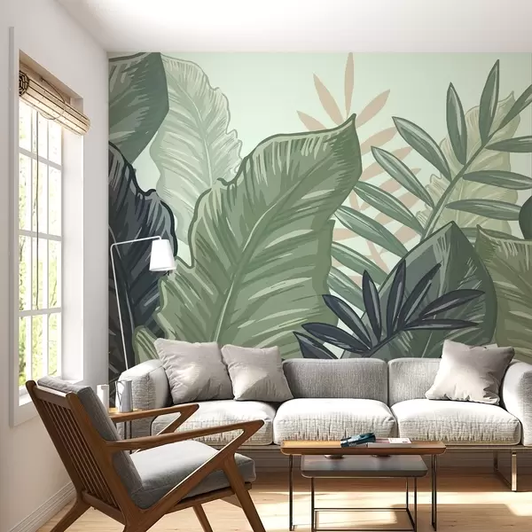 Fotomurales Hojas tropicales con fondo azul claro Nr. w02367v1