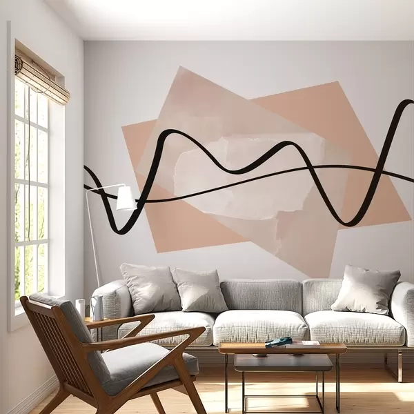 Fotomurales Líneas negras y formas beige abstractas Nr. w02377