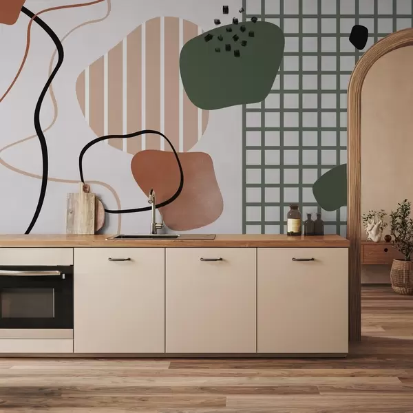 Fotomurales Cuadrícula verde y manchas y rayas abstractas Nr. w02379