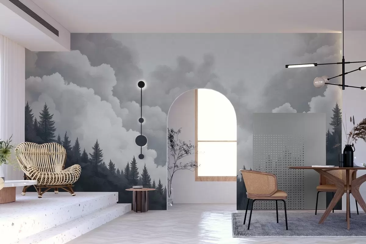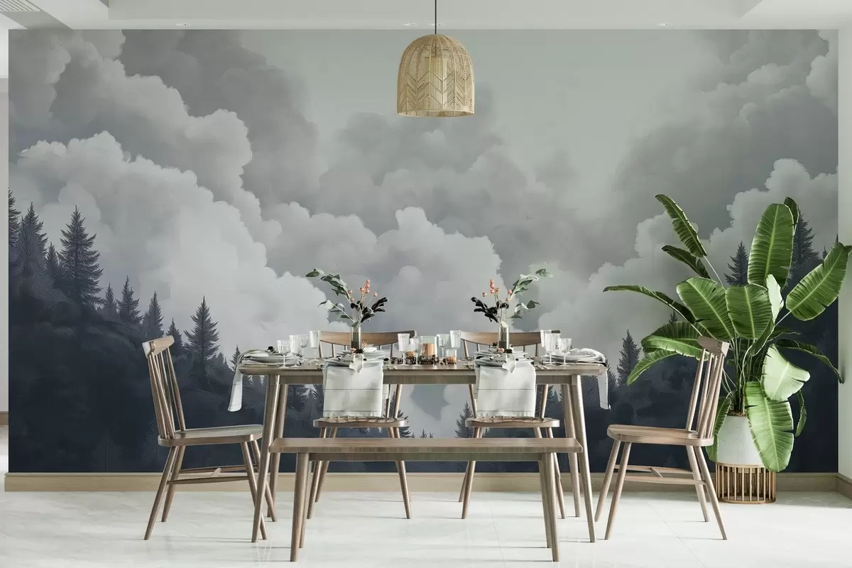Fotomurales Nubes espesas pintadas al óleo sobre el bosque Nr. w02411