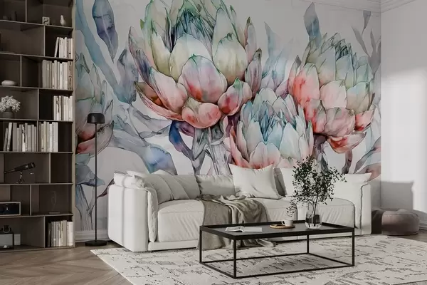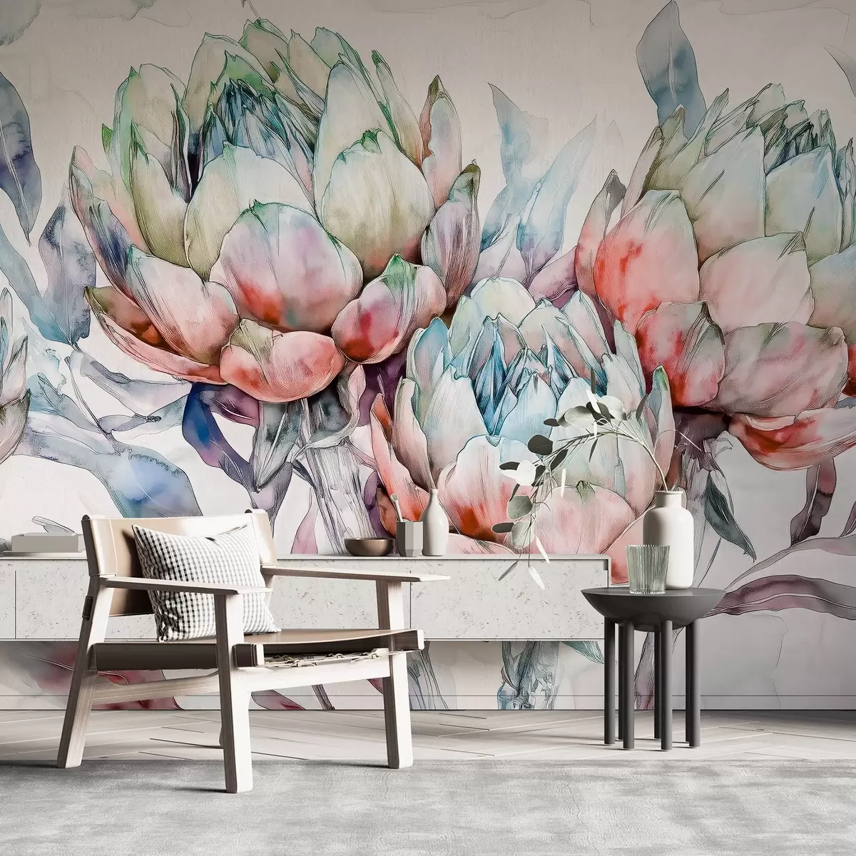 Fotomurales Alcachofas dibujo, estilo acuarela, floral, rojo, morado, verde Nr. w02484v1