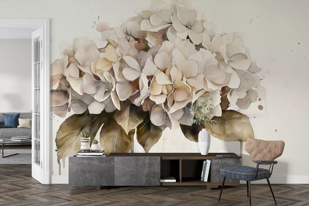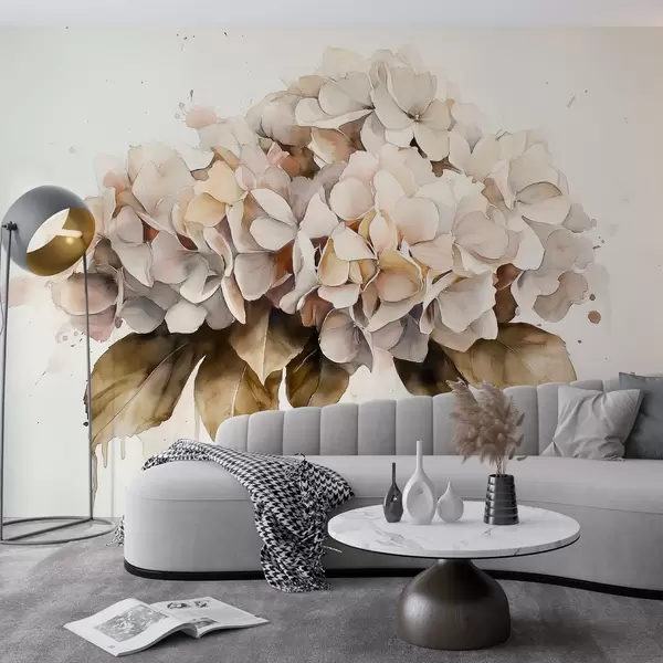 Fotomurales Dibujo estilo acuarela de flor de hortensia, colores beige Nr. w02485