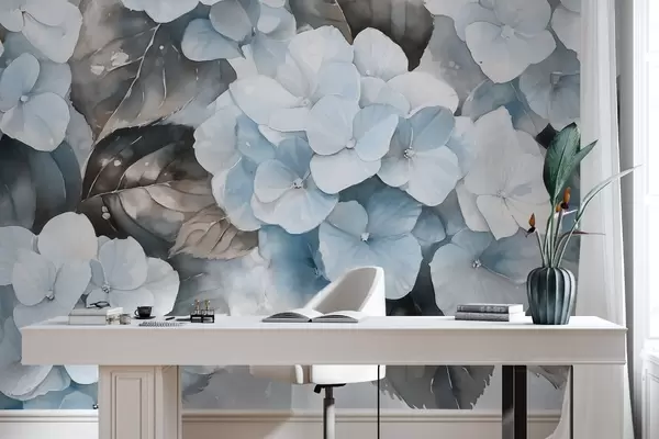 Fotomurales Flores de hortensia, dibujo estilo acuarela, colores azules, floral Nr. w02488v1