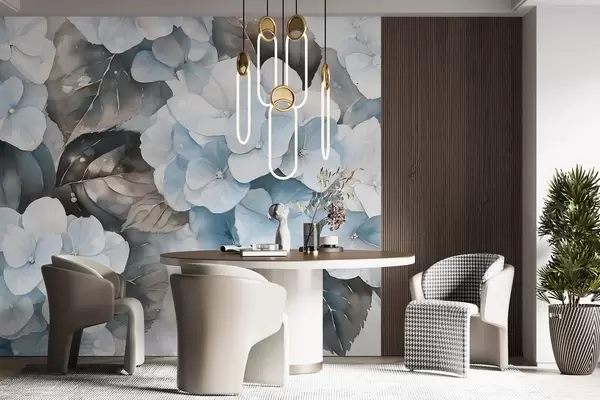 Fotomurales Flores de hortensia, dibujo estilo acuarela, colores azules, floral Nr. w02488v1
