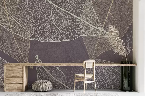 Fotomurales primer plano de hojas con venas en tonos gris púrpura Nr. w02520v3