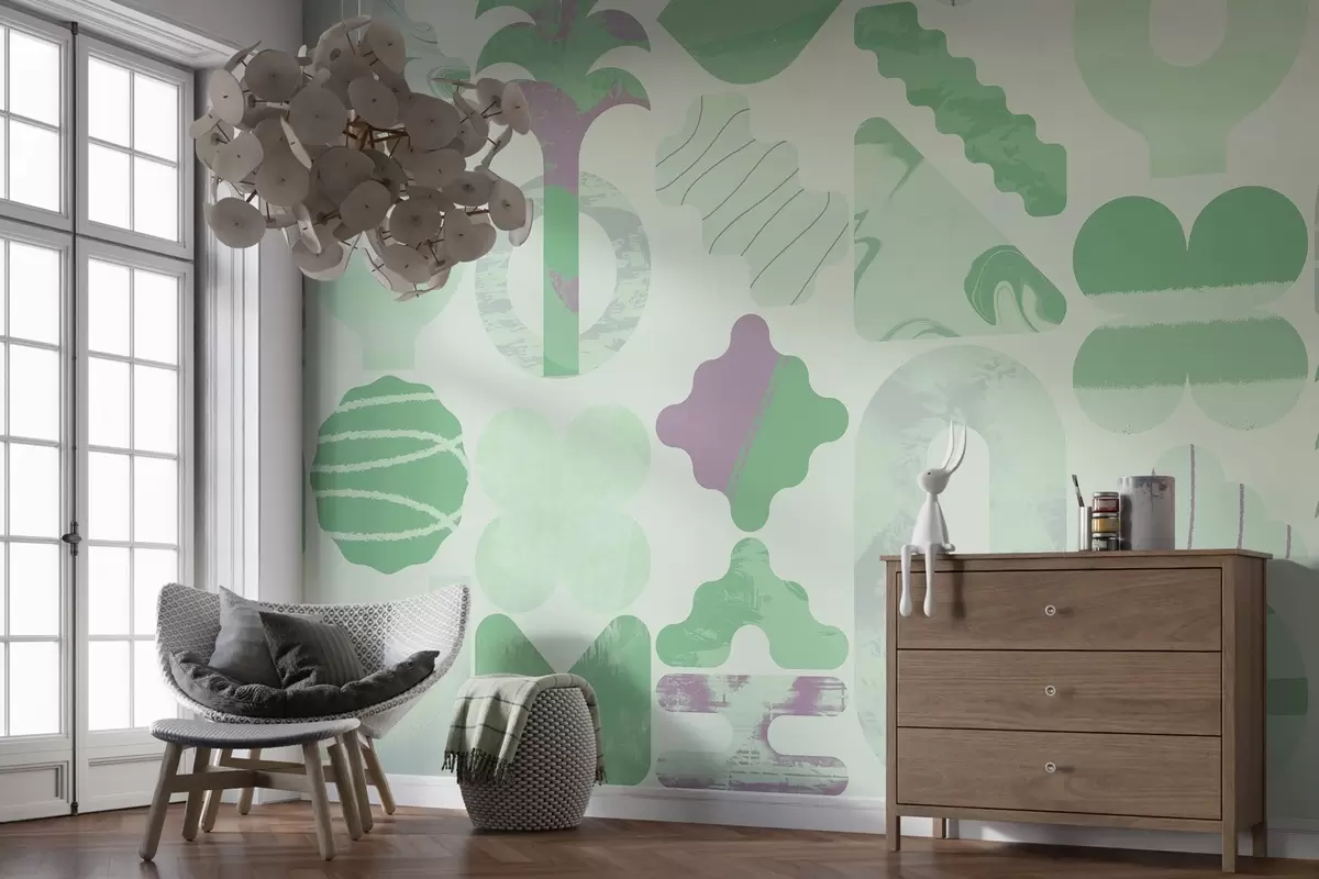 Fotomurales varias formas interesantes, geometría moderna en colores verdes Nr. w02550v2