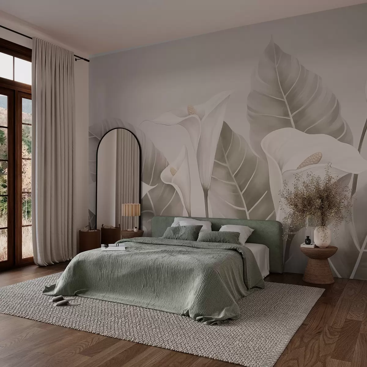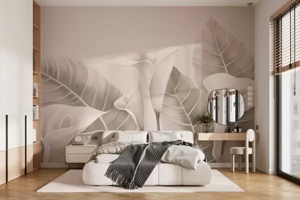 Fotomurales calas sobre fondo de hojas Nr. w02568