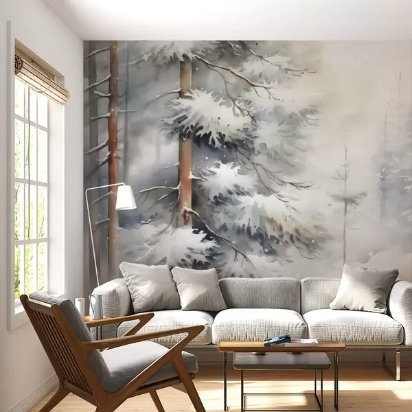 Fotomurales Bosque nevado imitación acuarela Nr. w02591
