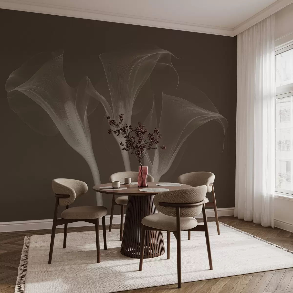 Fotomurales flores de Zantedeschia transparentes sobre fondo oscuro Nr. w02632v1