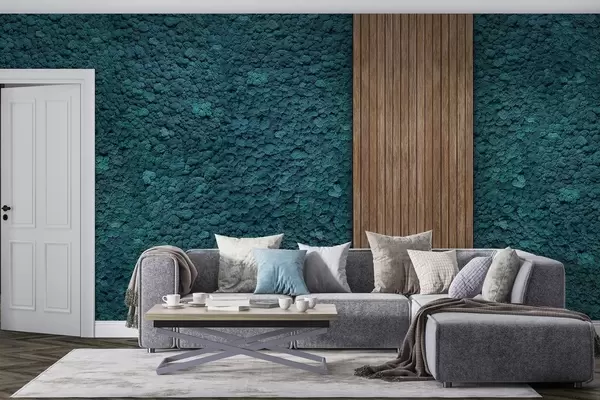 murales de pared Pared estilo musgo con panel de madera, exuberantes colores azules w02656v2