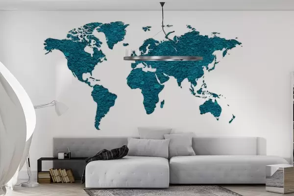 Fotomurales Mapamundi con musgo, naturaleza, paleta de colores azules Nr. w02657v1