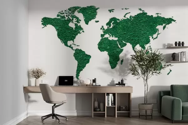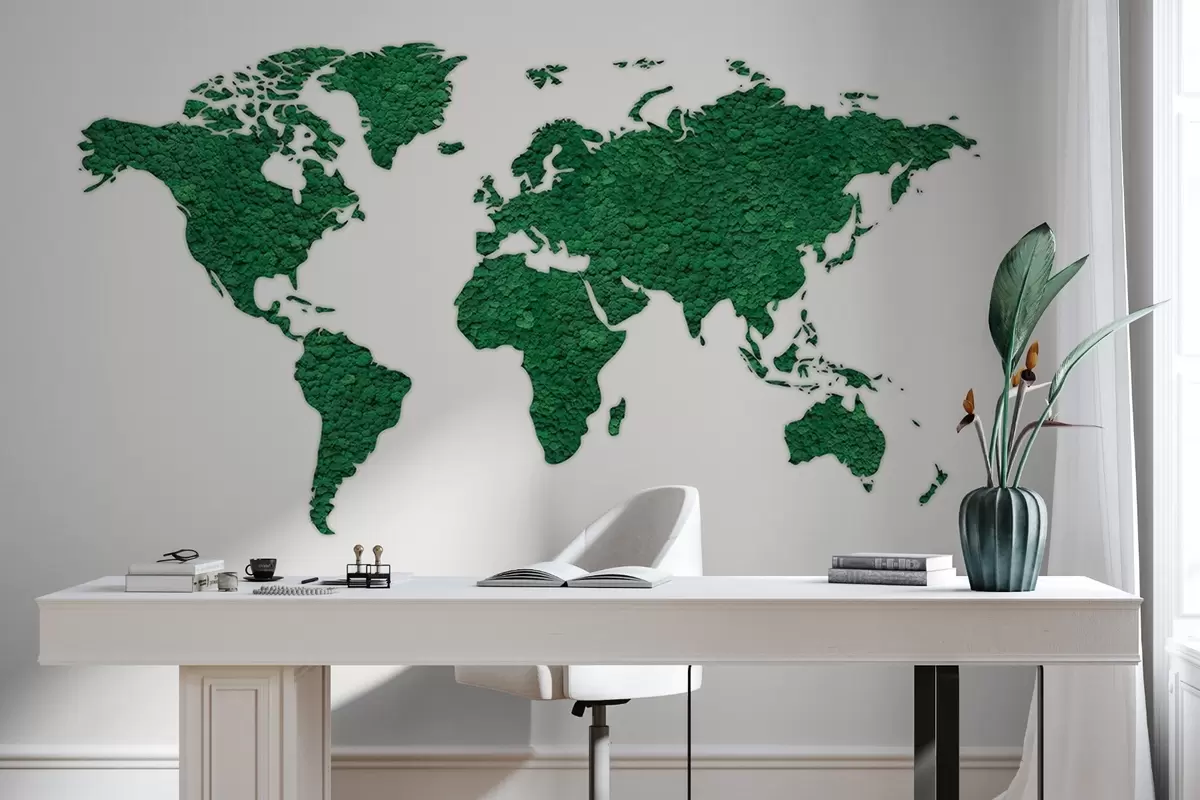 Fotomurales Mapamundi con musgo, naturaleza, exuberante paleta de colores verdes Nr. w02657v2