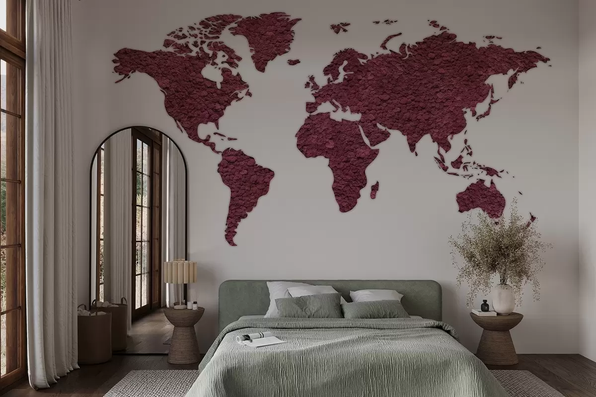 Fotomurales Mapamundi con musgo, naturaleza, paleta de color burdeos Nr. w02657v5