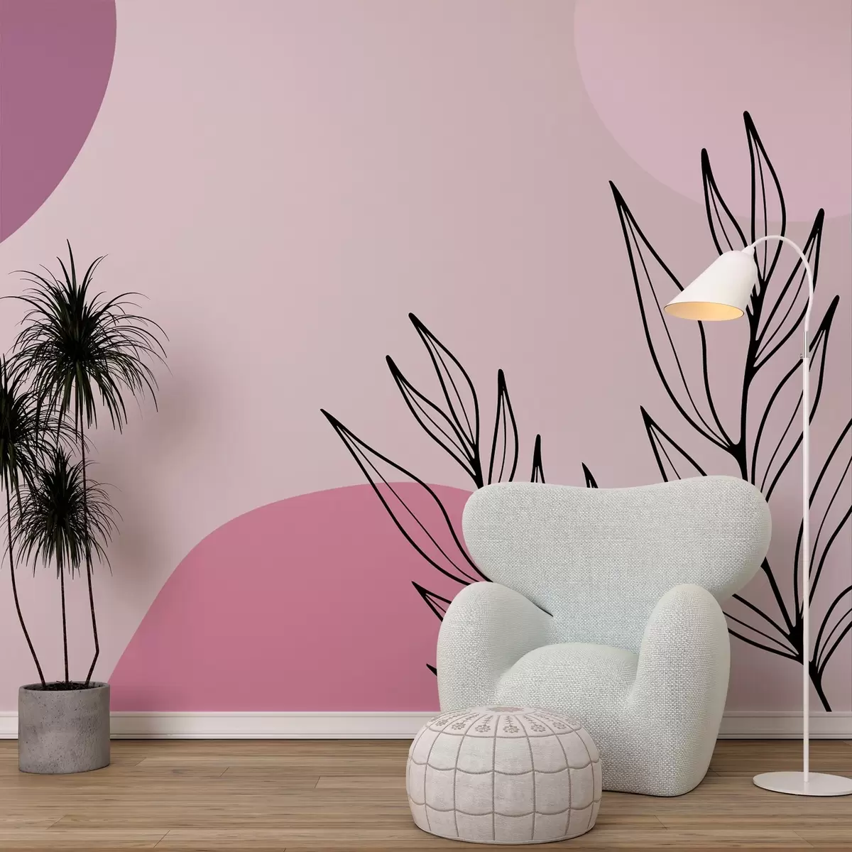 Fotomurales abstracción rosa con hojas Nr. w02666