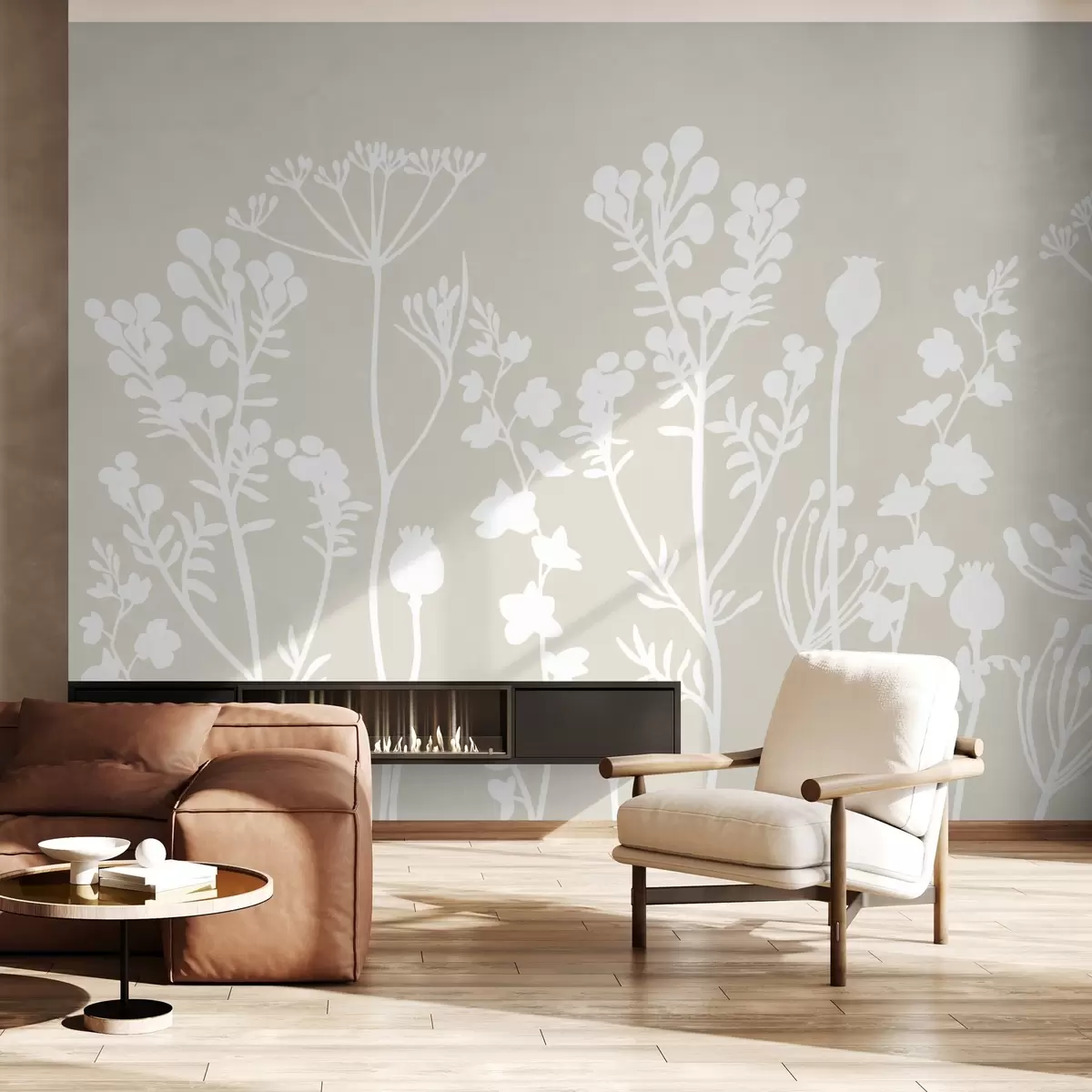 Fotomurales siluetas blancas de flores sobre fondo beige Nr. w02809v2